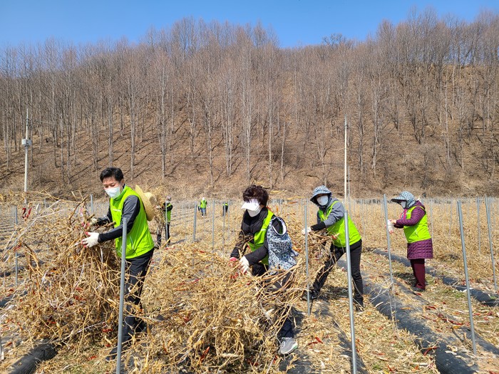 이날 서울농협 임직원들은 봄철 영농 준비에 어려움을 겪고 있는 고추농가를 방문해 고춧대 끈 제거와 농장 환경정리 작업에 구슬땀을 흘렸다.