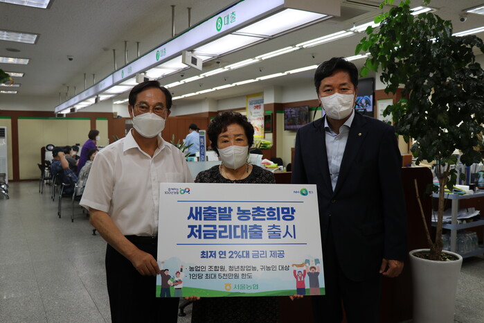 농협서울지역본부(본부장 황준구)는 12일 서서울농협(조합장 조원민)에서 이달 1일 출시된 최저 연2%대의‘새출발 농촌희망 저금리 대출’출시 기념 행사를 실시했다.