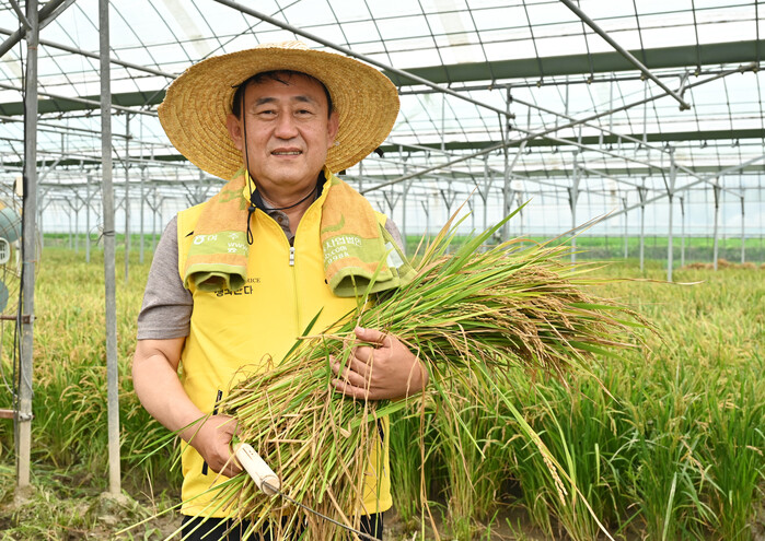 [로컬세계=김병민 기자]경기 여주시(시장 이충우)는 5일 여주시 우만동 소재 홍기완 농가에서 2022년도 대왕님표 여주쌀 전국 첫 벼베기를 실시했다.