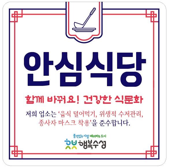 자세한 사항은 수성구 보건소 홈페이지 공지사항‘2024년 안심식당 신청 안내’를 참고하면 된다.