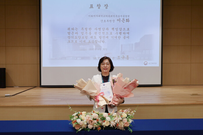 이대서울병원(병원장 임수미) 이은화 간호부원장이 보건복지부장관 표창을 수상했다. 이 간호부원장은 지난달 30일 보건복지부가 2023년 장기요양보험제도 도입 15주년을 기념해 선정한 노인장기요양보험 제도운영 유공자로 뽑혀 보건복지부장관 표창을 수상했다.
