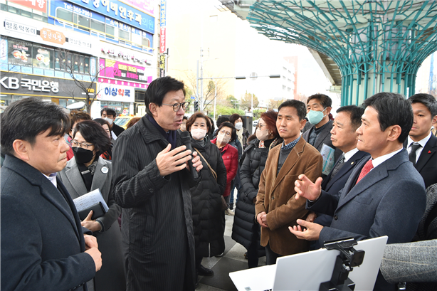 박 시장은 우선 화명고가교 일원 상가 주민들과 북구청, 북구의회와 함께 몇 년째 중단된 채 방치되어 온 화명고가교 경관개선 사업 현장을 직접 눈으로 확인하고 사업현황을 보고 받았다. 이후 앞으로의 예산확보와 추진 방향에 대해 논의했으며, 주민의 애로사항을 청취하기 위한 간담회를 가졌다.