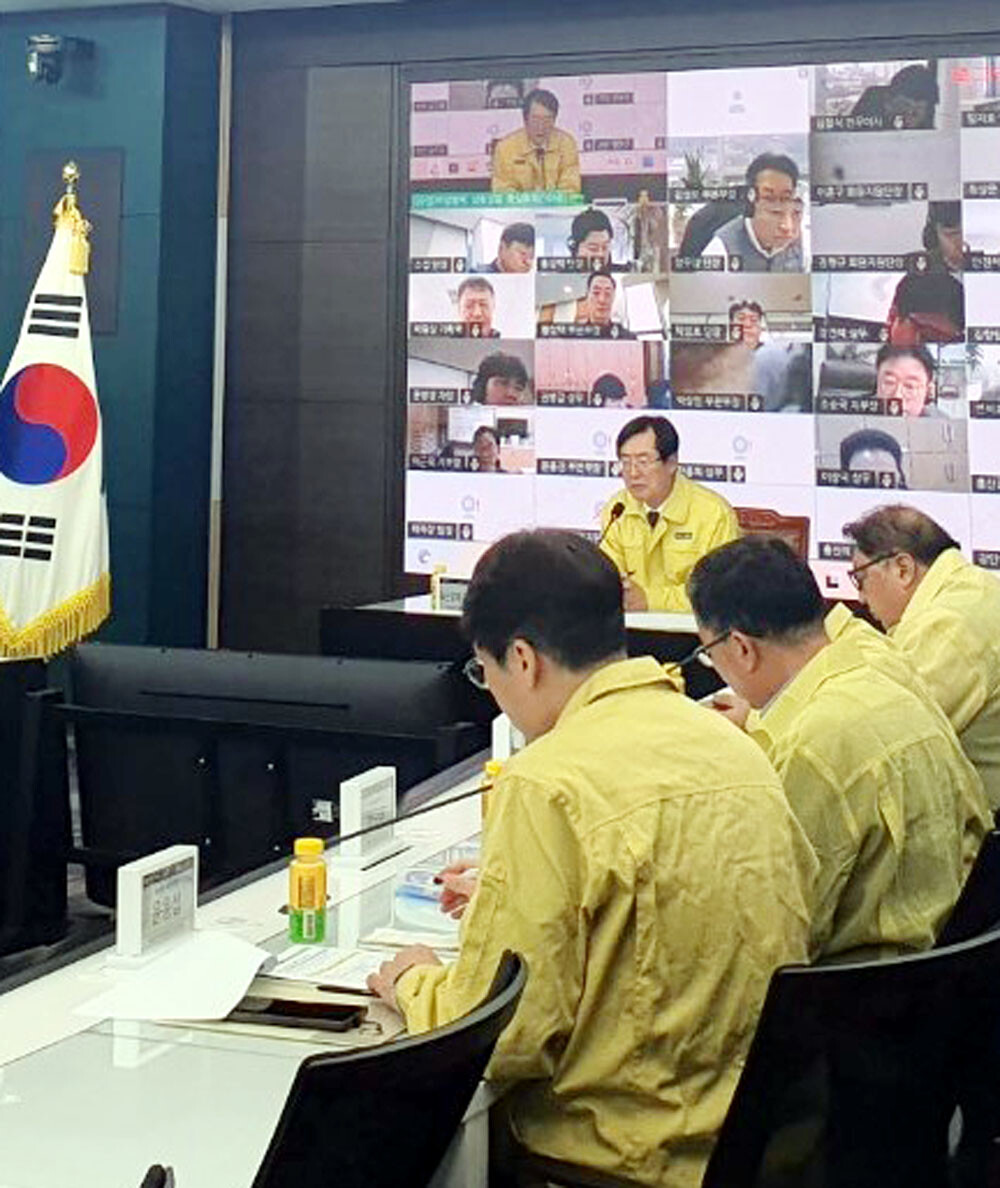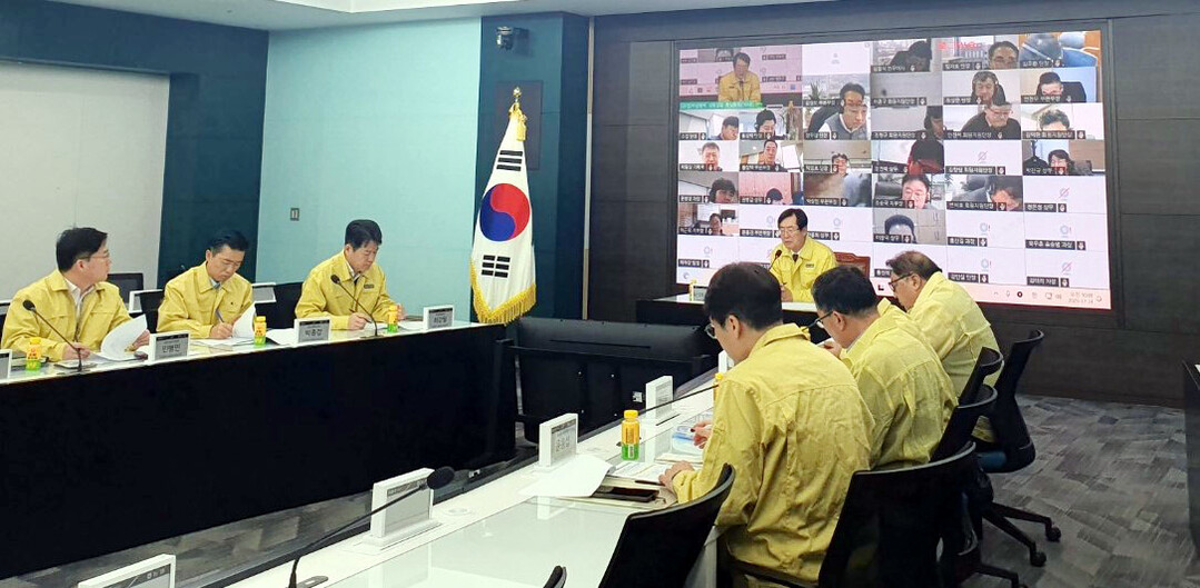 안병우 축산경제대표이사가 12월 24일, 농협중앙회 본관에서 '비상방역 상황점검 화상회의'를 주재하며 고병원성 AI 대응을 위한 방역 조치 이행 현황을 점검하고 있다. 농협 제공