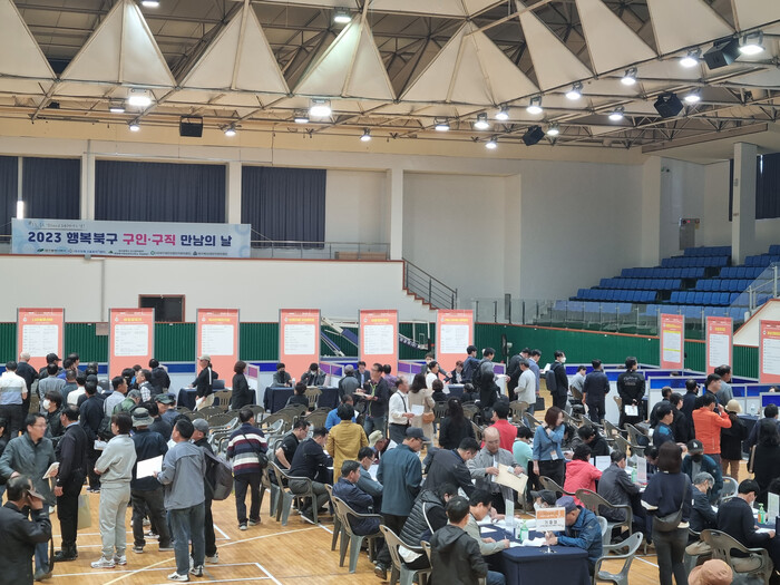 대구 북구청은 강북고용복지+센터, 대구시여성회관, 검단산업단지관리공단, 제3산업단지관리공단과 함께 이날 대구복합스포츠타운 시민체육관에서 '2023 행복북구 구인·구직 만남의 날' 행사를 개최했다.