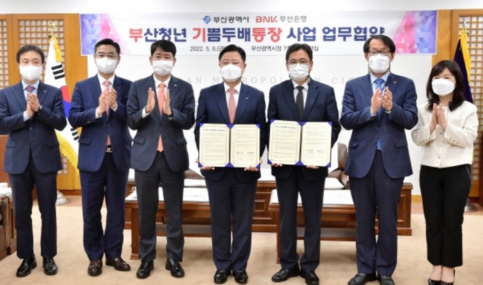 부산시는 6일 오전 부산은행과 업무협약을 맺고 오는 8월 ‘부산청년 기쁨두배통장’을 출시한다고 밝혔다.