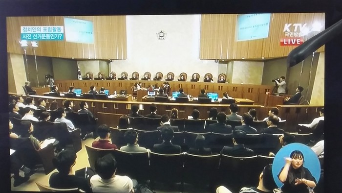 ▲16일 대법원 대법정에서 권선택 대전시장의 상고심 사건에 대한 심리가 열리고 있다. 국회TV 화면캡쳐. |
