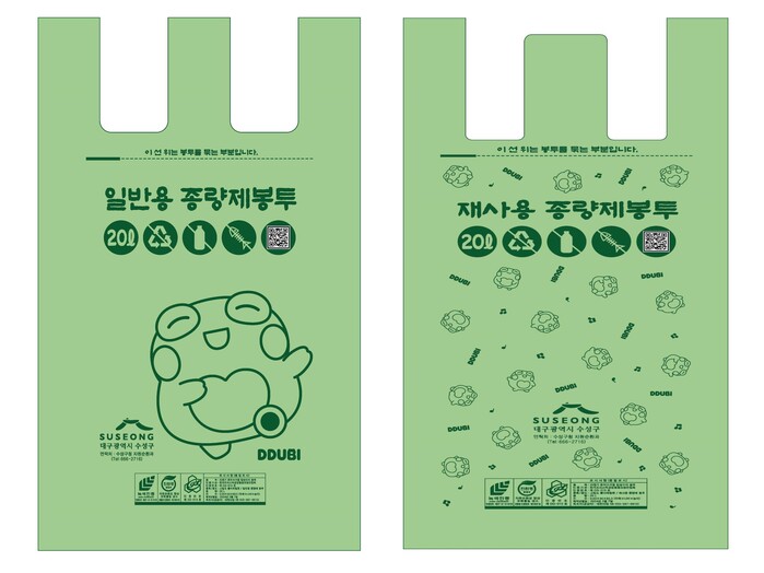 아울러 수성구 캐릭터 ‘뚜비’를 배치해 수성구 도시브랜드를 담아내는 동시에 친환경을 향한 의지도 함께 표현했다.