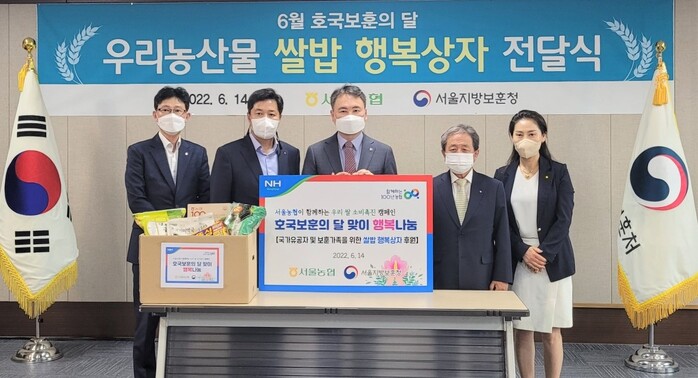 서울농협(본부장 황준구)은 14일 ‘6월, 호국보훈의 달’을 맞이하여 서울지방보훈청을 방문해 국가유공자와 보훈가족을 위한 ‘쌀밥 행복상자 전달식’을 가졌다.