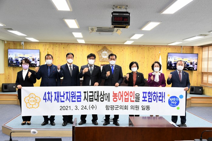 함평군의회는 건의안에서 정부 재난지원금 지급 시 농어업인들은 세 차례나 대상에서 제외됐고, 이번 4차 재난지원금에서도 배제될 위기에 처해 문제를 제기하고 나섰다.