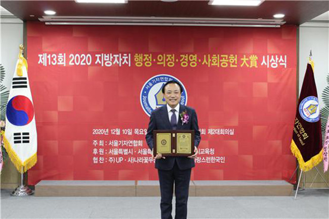 서울기자연합회에서 주관하는 2020 지방자치 의정대상 시상식은 올해로 13회를 맞이한 행사로 매년 연말 의원들을 대상으로 조례 제정, 지역현안, 갈등해소, 지역봉사, 의원 친밀도 등 주민자치 발전의 공적을 엄격히 심사하여 시상하고 있다.