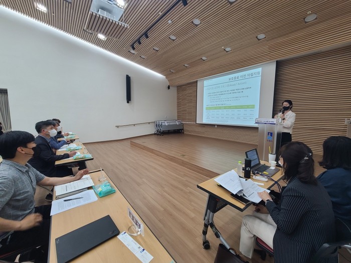 ▲자립준비청년 지원강화 토론회에서 김지선 부연구위원이 발제하고 있다. 수원시 제공 |