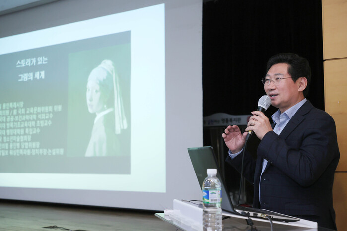 이 시장은 “미술작품을 보고 어지럼증을 느낄 정도로 황홀한 감명을 받은 상태를 ‘스탕달 신드롬’이라고 하는데 소설 <적과 흑>으로 잘 알려진 프랑스 작가 스탕달의 경험에서 비롯된 말”이라며 강의의 막을 열었다.