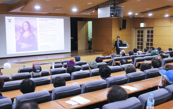 [로컬세계=김병민 기자] 이상일 용인특례시장이 13일 처인구 삼가동 처인노인복지관에서 (사)대한노인회 용인시 처인구지회 부설 처인노인대학 수강생 130명을 대상으로 ‘스토리가 있는 그림의 세계’를 주제로 특강을 했다.