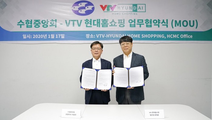 수산업협동조합중앙회(이하 수협)는 17일 현대홈쇼핑 베트남법인 호치민지사 회의실에서 VTV현대홈쇼핑(현대홈쇼핑 베트남법인)과 ‘한국 수산식품 판매확대를 위한 업무협약(MOU)’을 체결했다.
