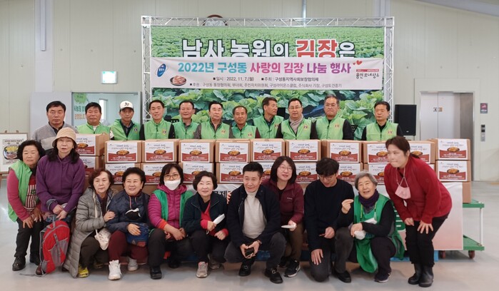 [로컬세계=김병민 기자]경기 용인특례시 기흥구 구성동은 7일 처인구 남사읍에 위치한 남사농원에서 사랑의 김장 김치 나눔 행사를 진행했다고 밝혔다.