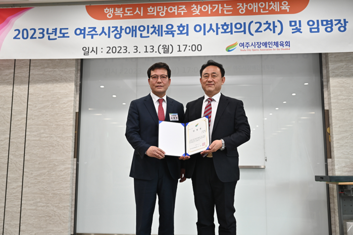 회의에 참석한 이충우 시장은 “몸이 불편하시고 거동이 어려우신 분들이 체육 활동하는 데 도움을 드리는 것이 장애인체육회의 의무라고 생각한다. 장애인체육회를 대표하는 임원분들께서 적극적으로 참여하셔서 도와주시고 응원해 주시기 바라며, 장애인체육회를 통해 여주 시민이 단합하고 건강하고 행복해질 수 있으면 좋겠다”고 말했다.
