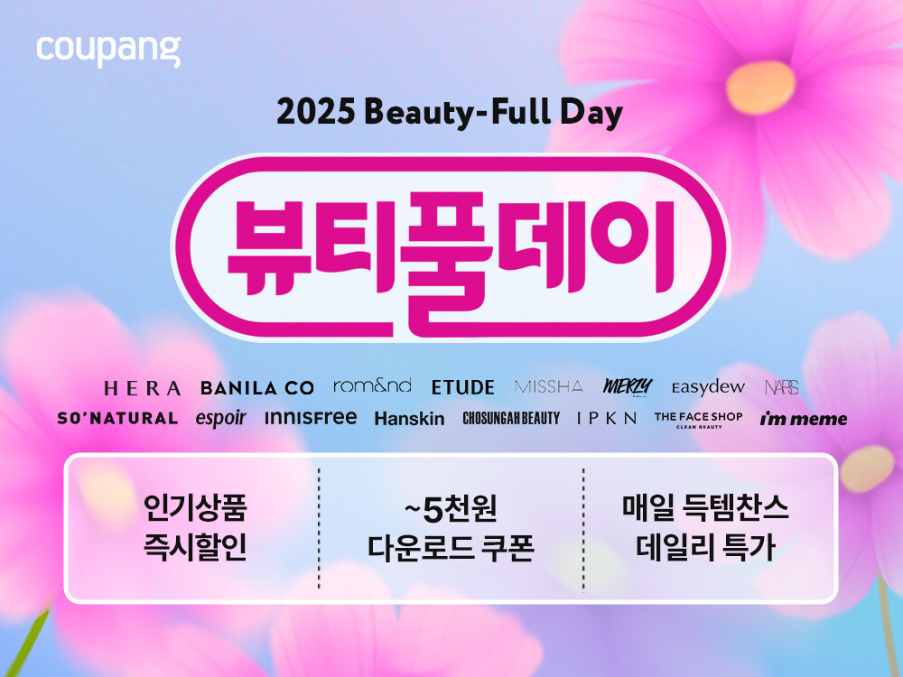 행사 기간 동안 매일 인기 상품을 한정 수량으로 선보이는 ‘원데이 특가’가 진행된다. ‘한스킨 블레미쉬 커버 내추럴 컨실러’, ‘한스킨 누디씬 베이스’, ‘조성아 원더바스 슈퍼베지톡스 그린 버블 팩클렌저’ 등 인기 제품을 하루 한정 특가로 구매할 수 있다. 일부 제품 구매 시 사은품도 한정 수량으로 제공한다. 쿠팡 와우회원은 2만원 이상 구매 시 5000원 할인 쿠폰을 받을 수 있다.