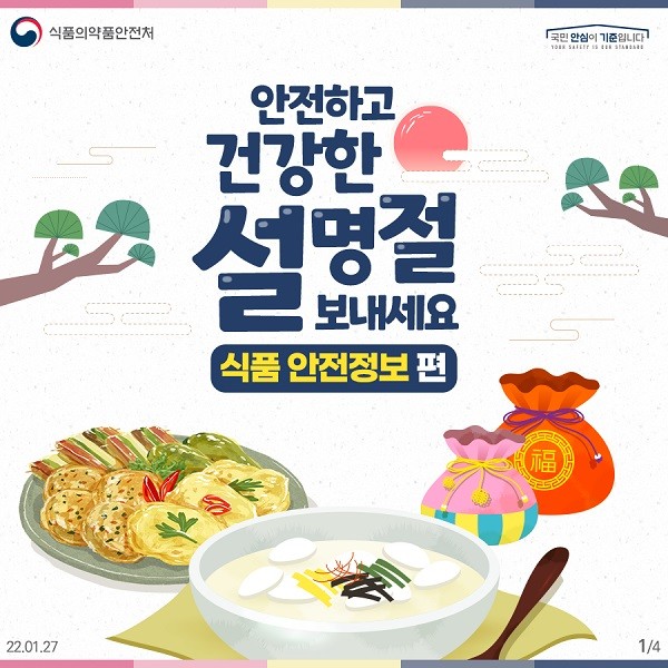 식약처는 “설 명절을 맞아 올바른 식품 구매·보관·섭취 요령 등 식품안전정보를 숙지해 건강하고 즐거운 설 연휴를 보내시길 바란다”고 전했다.