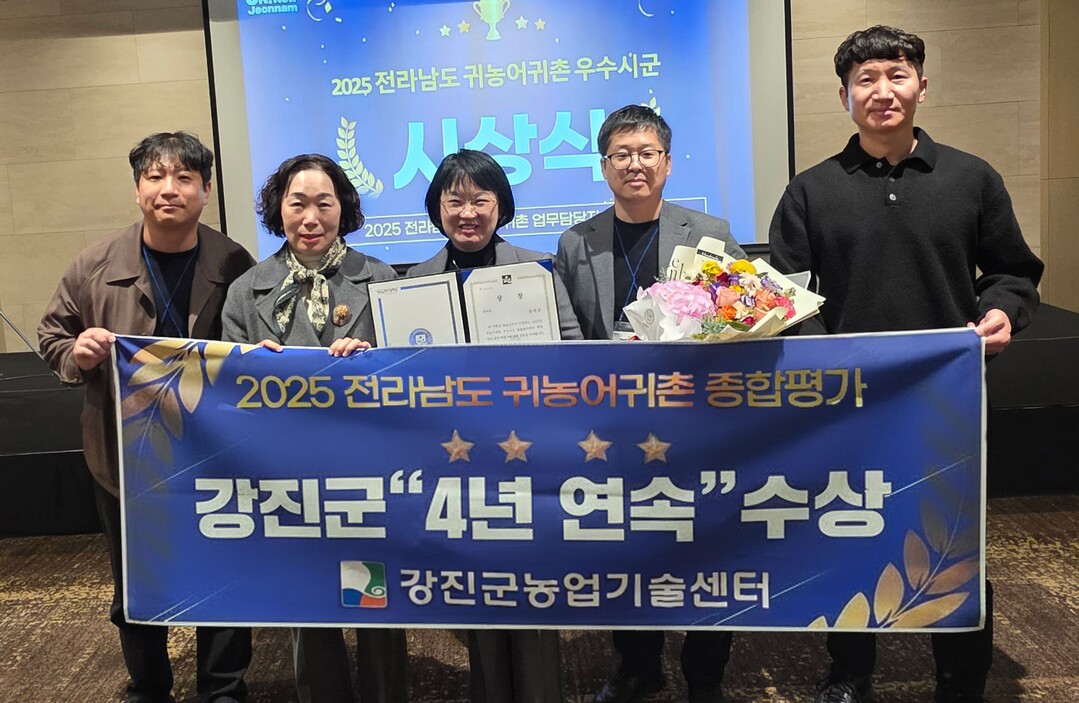 [로컬세계 = 이남규 기자] 전남 강진군이 ‘2025 전라남도 귀농어귀촌 종합평가’에서 우수 지자체로 선정되며 4년 연속 수상 기록을 세웠다.