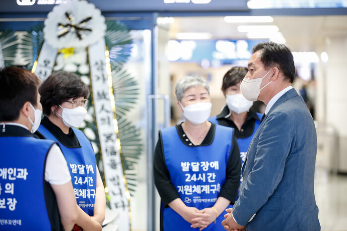 이재준 당선인은 18일 수원역 지하 1층에 마련된 ‘발달·중증 장애인 참사 경기도 분향소’를 방문해 헌화하고 이같이 말했다. 헌화 후에는 ‘발달장애인 부모연대’를 위로하며 “수원시 전체 장애인 수는 4만여 명이며 발달 장애인 수는 4200여명”이라며“이들과 가족 모두가 수원특례시에서 차별 없이 행복할 수 있도록 하는 것이 수원특례시장의 역할”이라고 말했다.