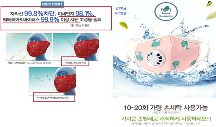 ▲공산품 마스크의 허위광고 위반 사례.(식약처 제공) |