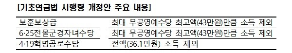 보훈보상금 외에 6·25전몰군경자녀수당 중 최대 43만원, 4·19혁명공로수당 전액 36만 1000원도 기초연금 소득인정액에서 제외된다.