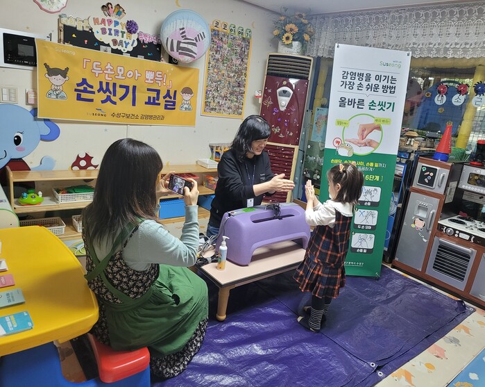 [로컬세계=박세환 기자] 대구 수성구(구청장 김대권)는 감염에 취약한 어린이들이 이용하는 아동 보육시설과 복지시설 18개소를 방문, 올바른 손씻기 교육을 오는 7월까지 실시한다고 21일 밝혔다.