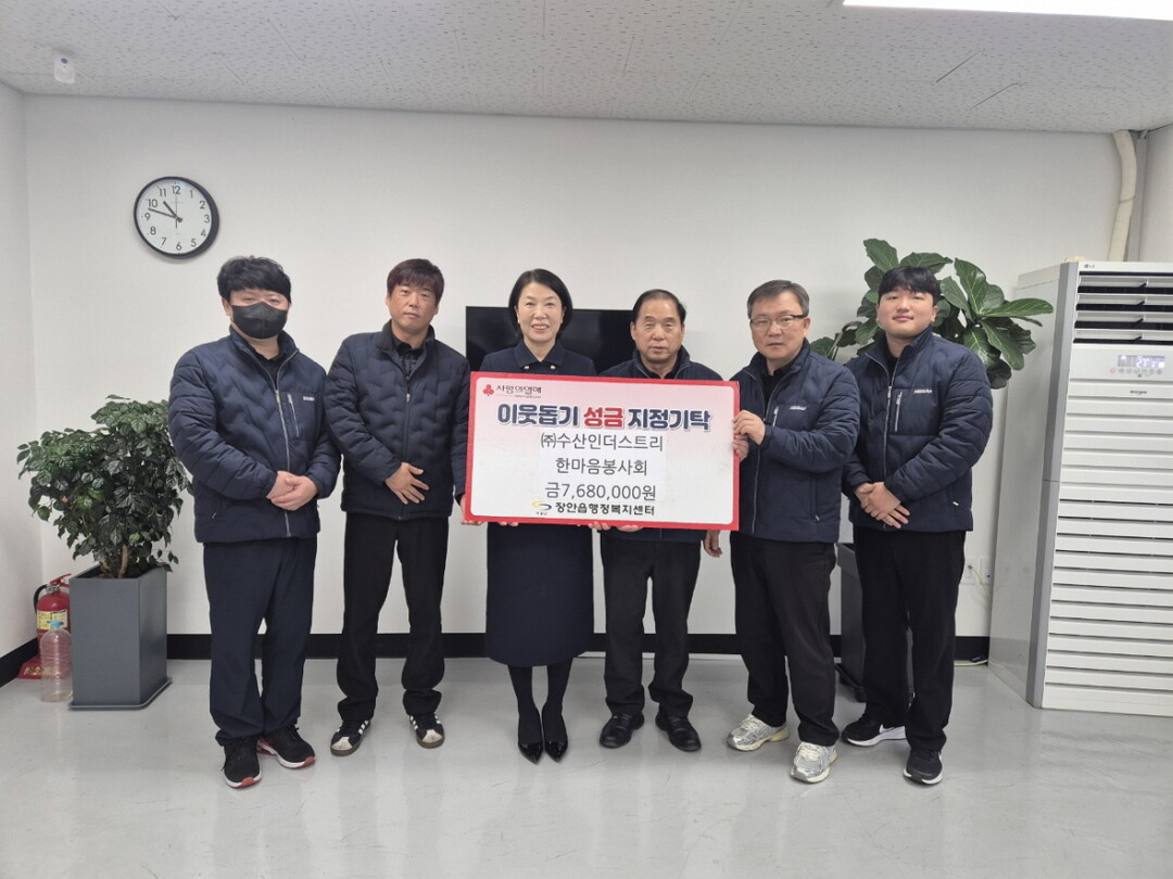박경희 장안읍장은 “지역을 위해 따뜻한 나눔을 실천해 주셔서 감사하다”며 “전달받은 성금은 어려운 이웃을 위해 소중히 사용하겠다”고 밝혔다.