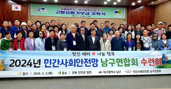 [로컬세계=박세환 기자] 민간사회안전망 대구 남구연합회는 2일 대구 남구의 자매결연지역인 전북 진안군 일원에서 '2024년 이웃사랑나눔 수련회'를 개최했다고 밝혔다.
