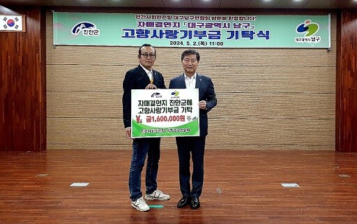 특히, 13개동 회원들의 고향사랑기부금(160만원)을 진안군수에게 전달하고 자매결연 두 지역(대구광역시 남구-진안군)간의 저소득주민 지원과 협력 방안에 대해 논의했다.