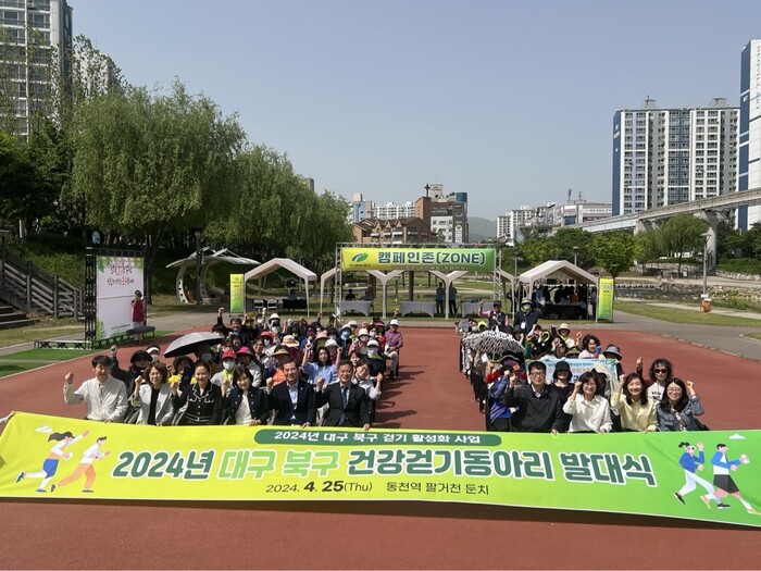매일 걷기 실천을 통해 지역사회에 걷기의 가치와 중요성을 전파할 ‘대구 북구 건강걷기동아리’가 지난 25일 동천역 팔거천 둔치에서 발대식을 갖고 본격적인 활동을 알렸다.