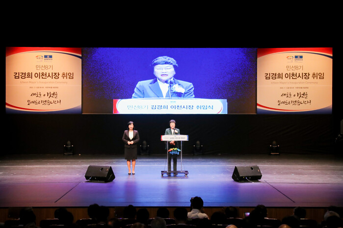[로컬세계=김병민 기자] 김경희 이천시장은 1일 이천아트홀에서 ‘민선 8기' 취임식을 갖고 공식 업무를 시작했다.