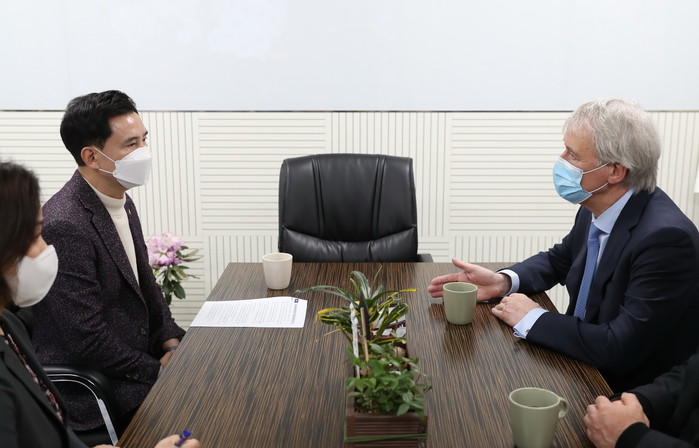 이 자리에서 피터 베닝크 CEO와 화성시장은 ▲글로벌 반도체 공급망 이슈 ▲화성시 반도체 인력 양성을 위한 협력방안 등을 논의했다.