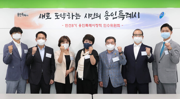 ▲용인특례시장직인수위원회 교육인프라 확충 TF단이 기념촬영을 하고 있다. |