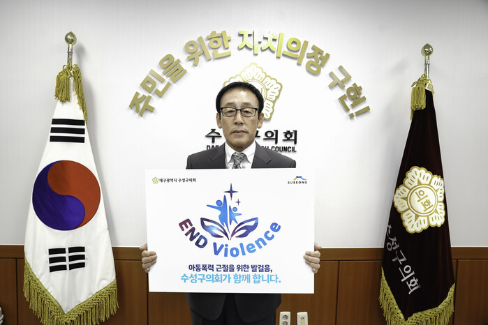 [로컬세계=박세환 기자]대구 수성구의회 전영태 의장이 아동폭력 근절을 위한 ‘#ENDViolence’ 온라인 캠페인에 동참했다.