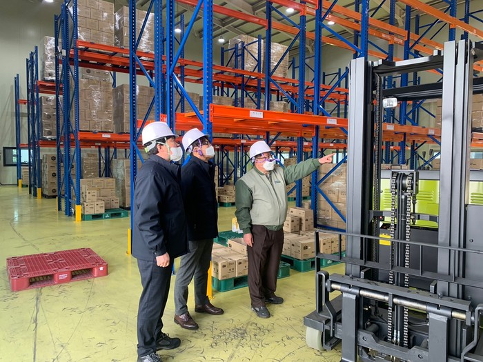 ▲29일, 서울검사국 김정일 국장(왼쪽 두번째), 한국양봉농협 문삼준 상무(왼쪽 세번째)가 한국양봉농협 경제사업본부에서 중대재해예방 현장점검을 실시하고 있다. 농협 제공 |