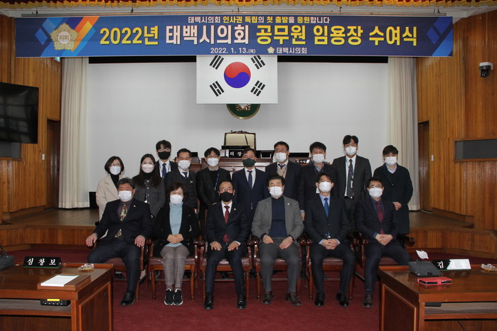 [로컬세계 박상진 기자]강원 태백시의회는 13일 의회 인사권 독립에 따라 2022년 의회공무원 12명을 대상으로 임용장 수여식을 가졌다.