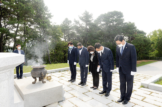 파주시의회 한양수 의장, 조인연 부의장, 목진혁 의회운영위원장, 박대성 자치행정위원장, 이용욱 도시산업위원장은 6일 현충탑을 참배했다.