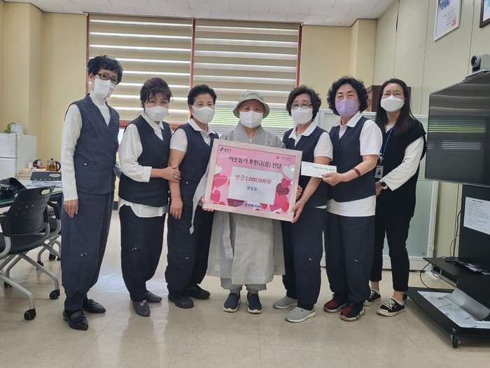 이 성금은 영일암 주지스님을 중심으로 사찰에서 활동 중인 부르다봉사합창단원들이 십시일반 뜻을 모아 마련한 것이다.