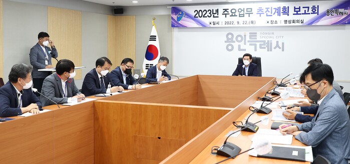 용인시는 22일 이 시장 주재로 '2023년 주요업무 보고'를 진행하고, 각 실·국·사업소와 협업기관의 내년도 주요사업 계획을 검토하고 논의했다.