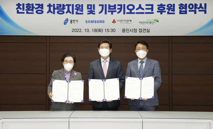 협약에 따라 삼성전자 용인사회공헌센터는 오는 2027년까지 관내 사회복지시설에 14억원 상당의 친환경 차량 40대를 지원한다.
