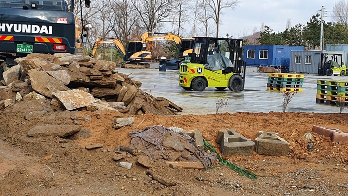 ▲ 중장비 운전학원의 모습, 소음과 비산 먼지로 주변 주민들은 고통을 호소하고 있다. 사진=파주시 연합기자단 |