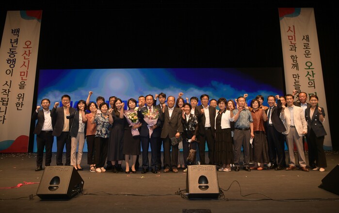 이권재 오산시장이 1일 오전 오산문화예술회관 대공연장에서 유관기관 및 사회단체, 시민들의 기대와 환호 속에 민선 8기 출발을 알렸다.