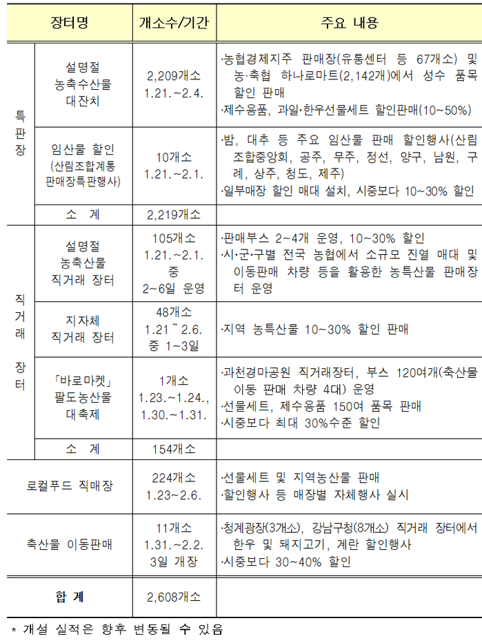 ▲설 직거래 장터 및 특판장 운영계획(안).(농식품부 제공) |