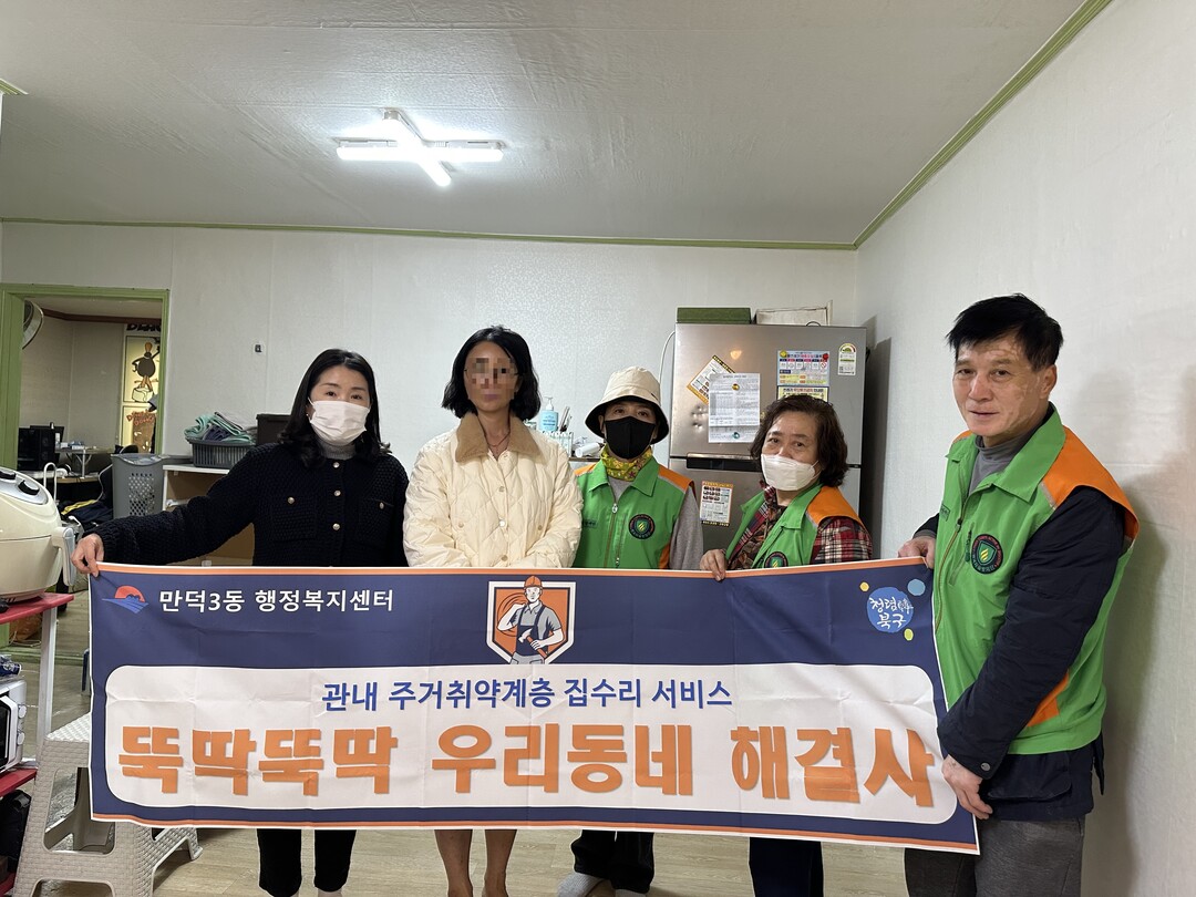 만덕3동 행정복지센터는 이번 활동을 통해 주거취약계층이 보다 안락한 환경에서 생활할 수 있도록 지원했으며, 앞으로도 주민 복지 향상을 위한 다양한 현장 지원 방안을 지속적으로 검토할 계획이다.