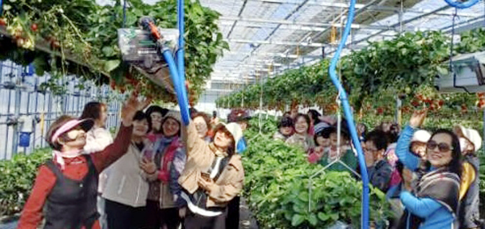 「서울 농심천심 농촌 체험단」2기에 참여한 서울경서농협 여성조직 회원들이 7일 충북 청주 딸기 농장에서 딸기 수확 체험을 하고 있다. 농협 제공