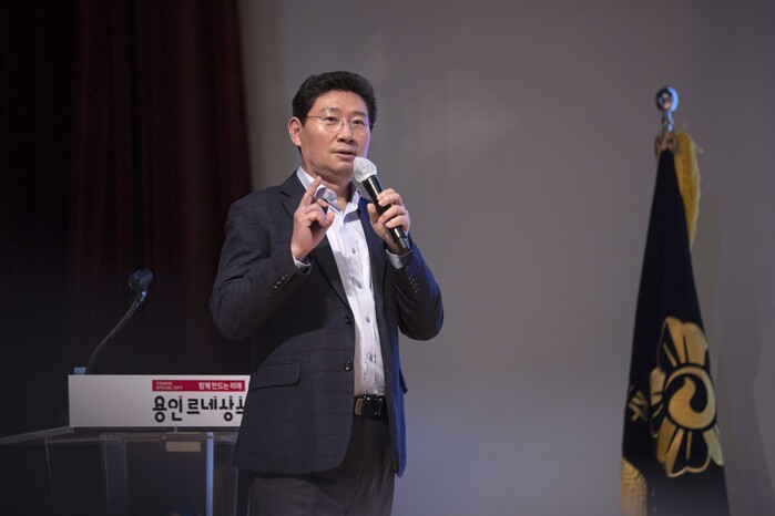 | ▲ 이상일 용인특례시장이 민주평통자문회의 용인시협의회 특강을 하고 있다. 용인시 제공 |