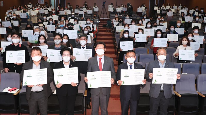 [로컬세계=김병민 기자]경기 용인특례시는 27일 시청 3층 에이스홀에서 '2050 탄소중립 자원봉사 실천 서약 및 선언식'을 열었다고 밝혔다.