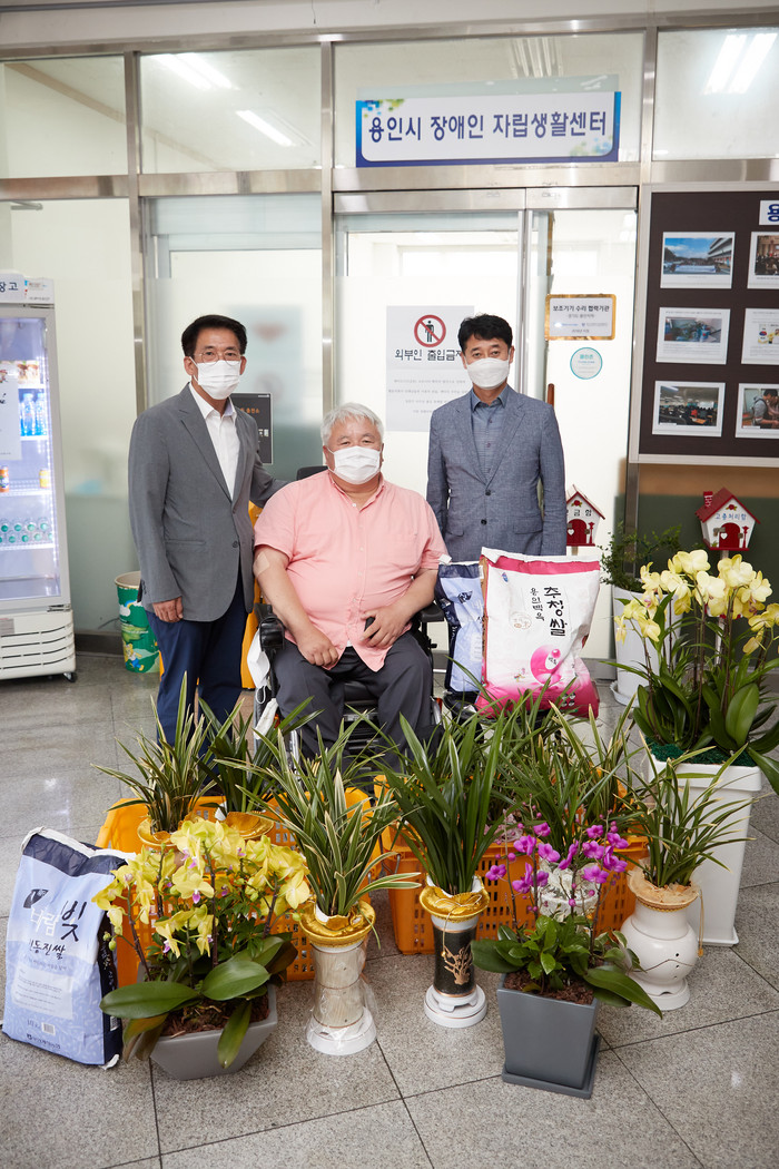 경기 용인시의회 김기준 의장은 3일 오전 11시 기흥구 상하동에 위치한 용인시장애인자립생활센터(센터장 김정태)를 방문해 후반기 의장 선출로 인해 받은 축하 화환과 쌀 등을 기부했다.