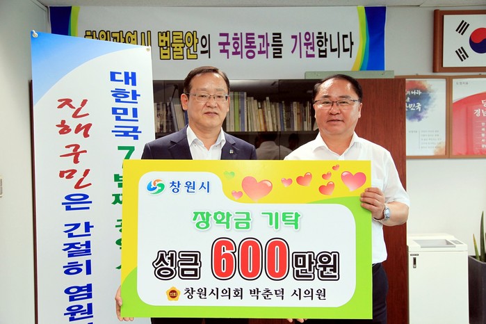 임인한 진해구청장은 “바쁜 의정활동 중에도 지속적인 선행활동에 감사드린다”며 “기탁된 장학금은 우리지역 인재육성을 위해 소중히 쓰여질 것”이라고 강조했다.